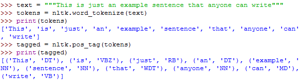 Some examples of NLTK usage are presented below.
